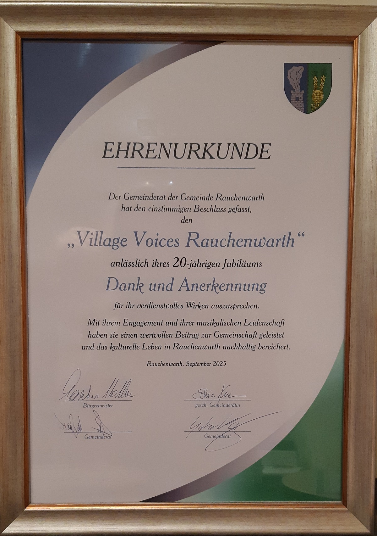 | Jubiläumskonzert 13.9.2025 20 Jahre Village Voices Rauchenwarth |