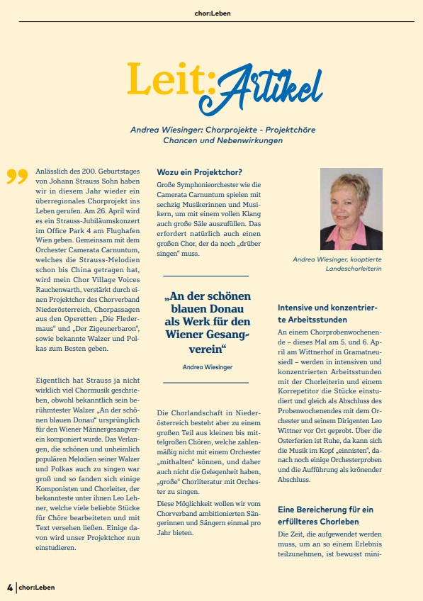 | Johann Strauss Gala Konzert mit Camerata Carnuntum, Judith Sauer Sopran, Gernot Heinrich Tenor Projektinfo Chorverband NOE (Zeitung Chorverband NOE 2025/1) |